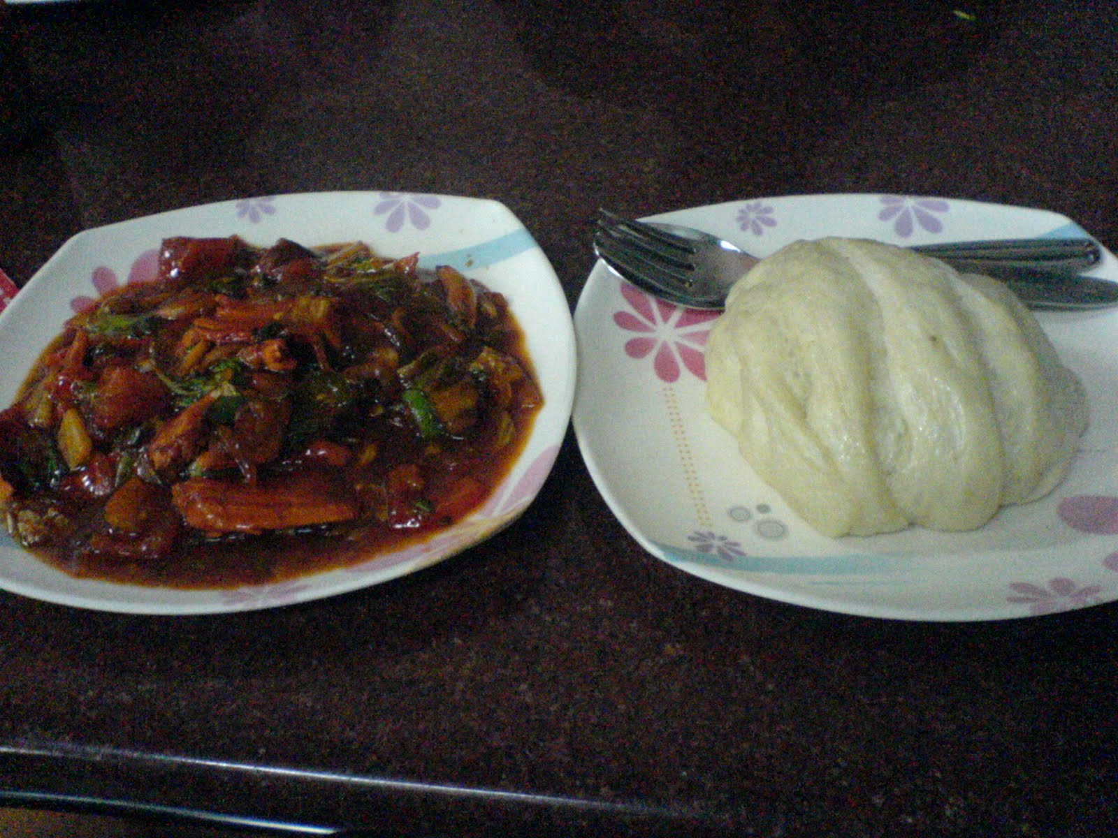 VP and I were quite full after out little adventure at Tunday's, so a plate of chicken momos (steamed) and a plate of Shaptra with Tingmo is what we ordered respectively, although knowing VP, I knew I'd have to finish off what he leaves for "the poor hungry people on the street". Shaptra is a spicy dish having peppers and onions with chicken, beef, or veggies. It's usually had with the Tingmo, which is a hand made Tibetan bun. If you look closely at the picture below, you'll notice that the top of the bun isn't dark brown like commercially available buns. I later found out that it's steamed.
